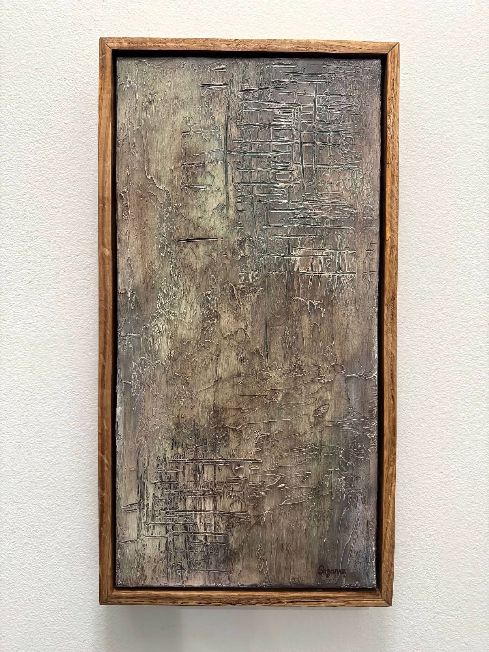 Introduce an element of subtle drama and organic depth to your decor with "Moss & Mortar," a striking 10x20 textured acrylic painting. Encased in a refined, natural wood frame, this piece offers a unique blend of abstract expression and the enduring beauty of aged materials.