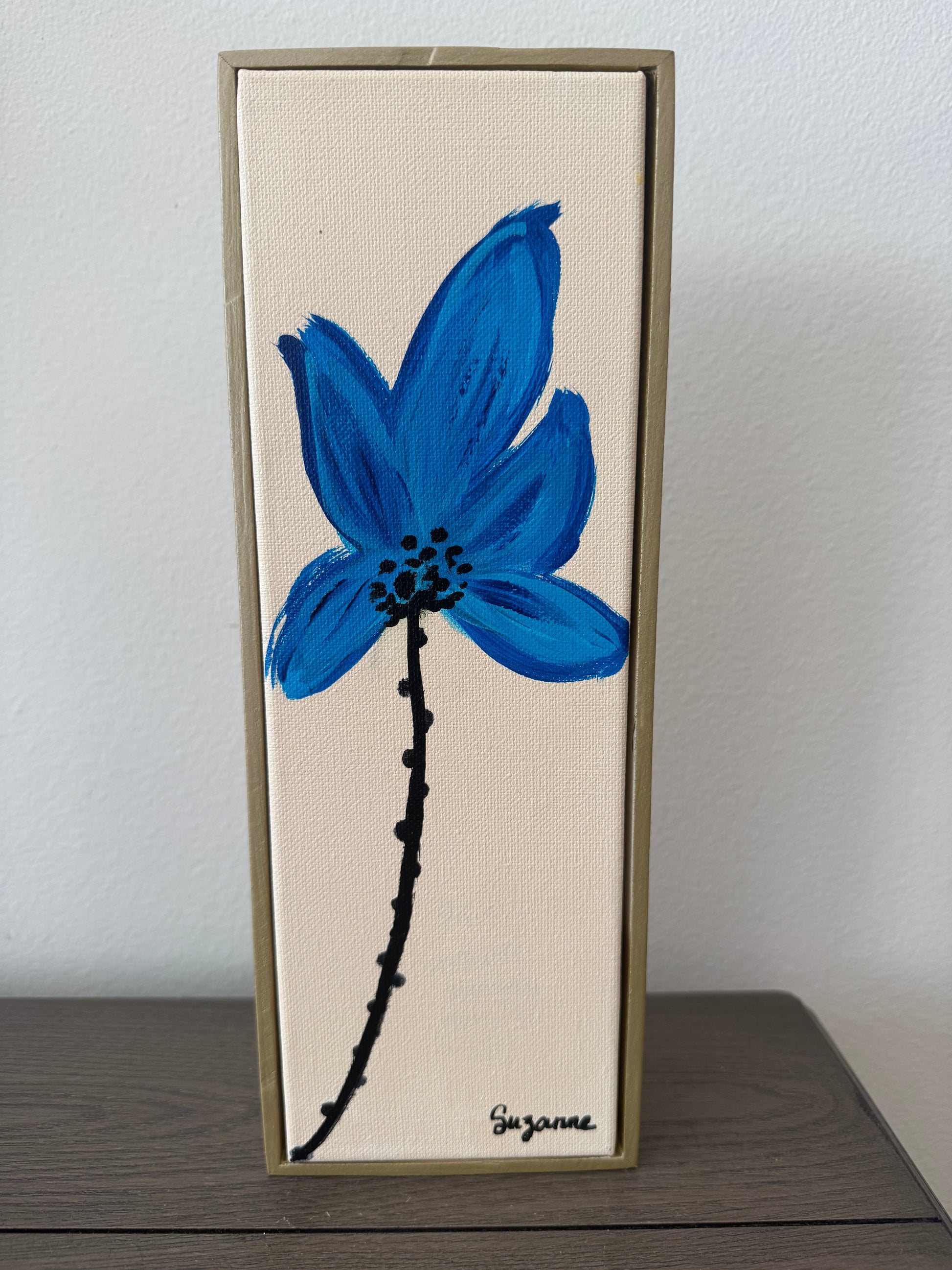 Gracefully bold and unapologetically modern, these florals celebrate strength, and the beauty of contrast. Each 4x12 canvas showcases a single expressive bloom—one in regal violet, one in deep magenta, and one in vibrant cobalt each with its own curved stem and unique energy.