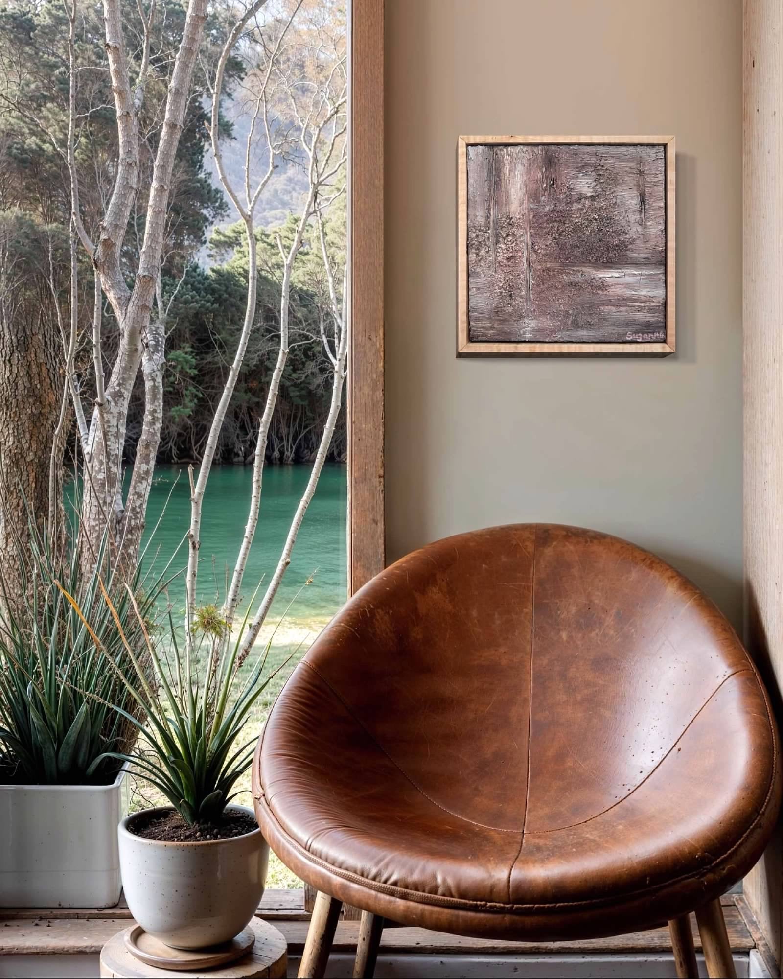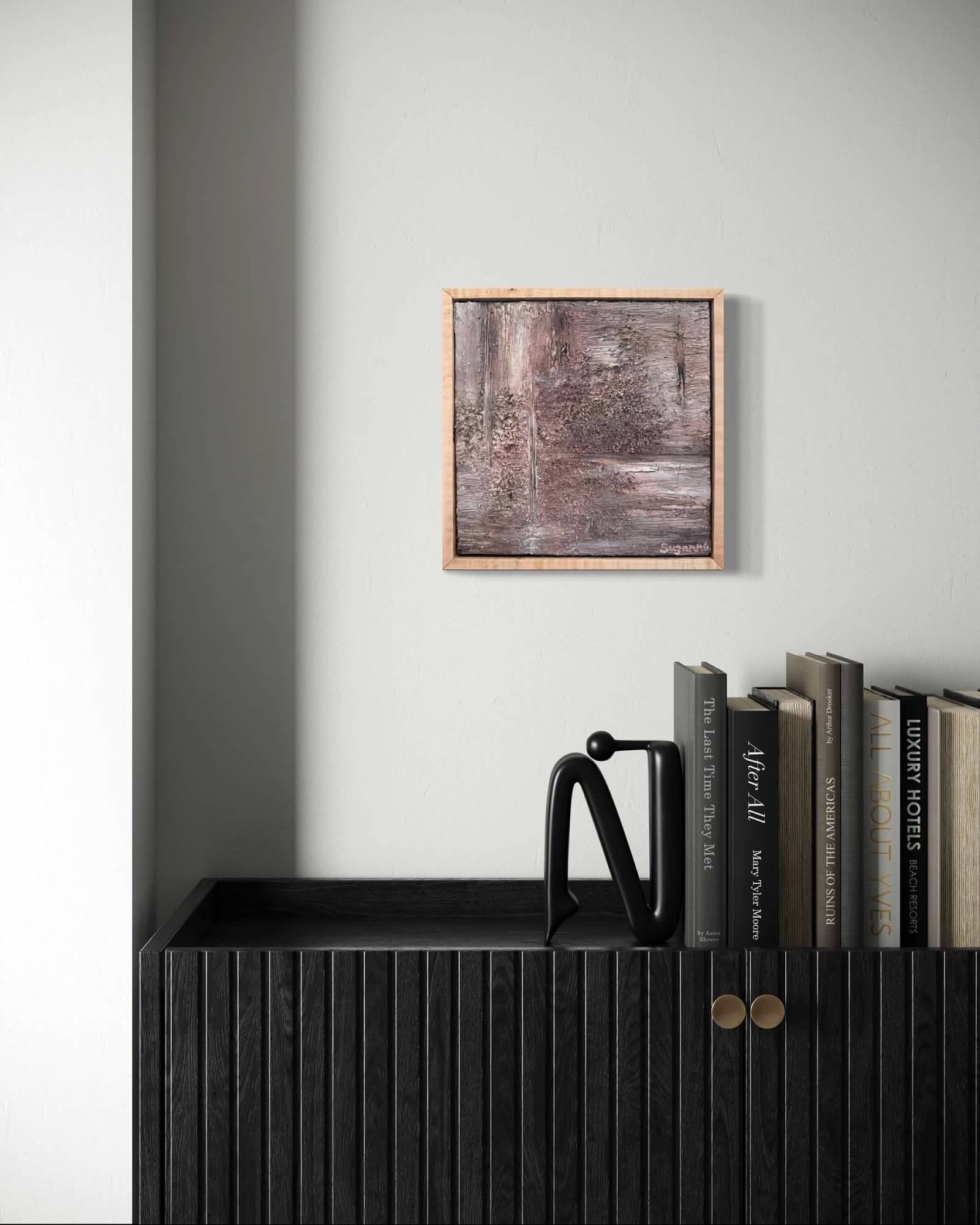 Introduce a peaceful, atmospheric moment to your space with "Heather Stone," a unique 10x10 heavily textured acrylic painting. This original artwork captures the essence of soft, rugged terrain and muted color, framed perfectly in smooth, light Maple wood.